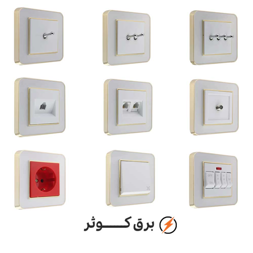 مشخصات کلید پریز ایران الکتریک مدل ارس طلایی سفید: