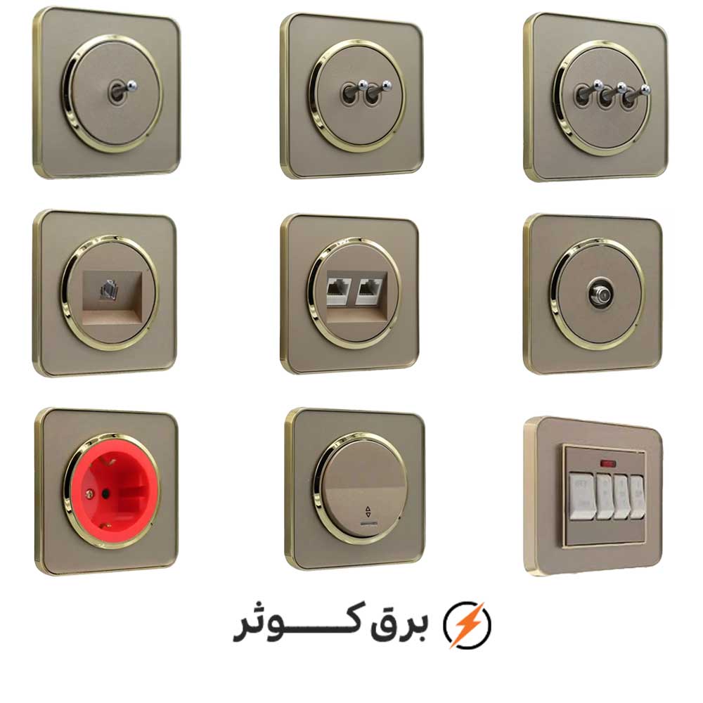 کلید و پریز ایران الکتریک مدل اسپیناس طلایی زه بژ میان بژ