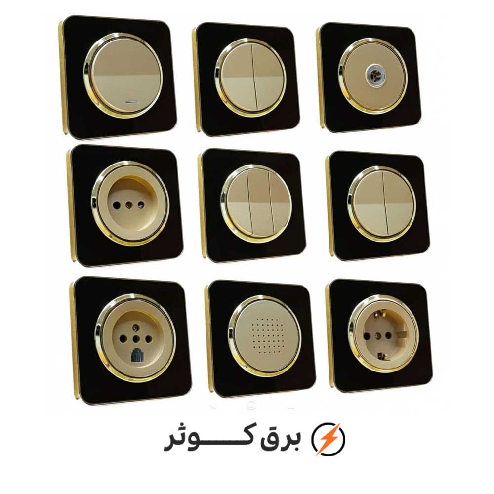 کلید و پریز ایران الکتریک مدل اسپیناس طلایی زه مشکی میان بژ